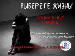 Научная библиотека им. А. Н. Коняева присоединяется к Общероссийской акции и подготовила информационный дайджест «Жизнь без наркотиков: выбор свободы» (Социальные плакаты против наркотиков).