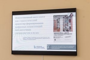 Завершилось мероприятие мастер-классом «Алгоритмическое искусство и технологии ИИ в библиотечной практике», который провела старший преподаватель кафедры библиотечно-информационной деятельности и электронных коммуникаций Елена Олейникова.