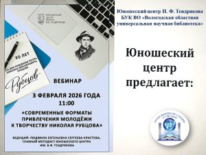 Организатор вебинара – Юношеский центр И. Ф. Тендрякова БУК ВО «Вологодская областная универсальная научная библиотека».