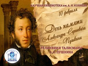 Литературная гостиная Научной библиотеки им. А. Н. Коняева Луганского государственного университета имени Владимира Даля подготовила литературно-исторический дайджест «Реликвии и талисманы А. С. Пушкина».