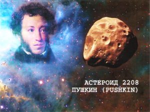 - ПУШКИН («2208 Pushkin») – астероид главного пояса, который был открыт 22 августа 1977 года советским астрономом Н. С. Черных в Крымской астрофизической обсерватории и 1 марта 1981 года назван в честь великого русского поэта А. С. Пушкина.