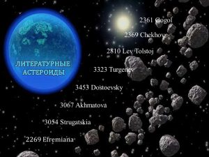 - А также: астероиды Грибоедов, Блок, Бунин, Маяковский, Ахматова, Цветаева, Вольтер, Гёте, Диккенс, Рабле, Кафка, Марк Твен, Азимов, Лем … И это ещё не всё!