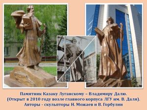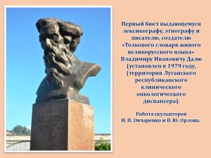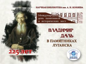 В преддверии Международного дня памятников и исторических мест, а также в рамках празднования 225-летия со дня рождения нашего земляка, Литературная гостиная Научной библиотеки им. А. Н. Коняева Луганского государственного университета имени Владимира Даля подготовила краеведческий дайджест «Скульптурный портрет Владимира Даля».
