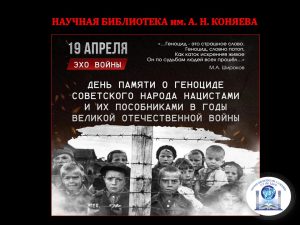 Литературная гостиная Научной библиотеки им. А. Н. Коняева Луганского государственного университета имени Владимира Даля подготовила информационно-исторический дайджест «Эхо войны: День памяти жертв геноцида» (см. информационные листы).